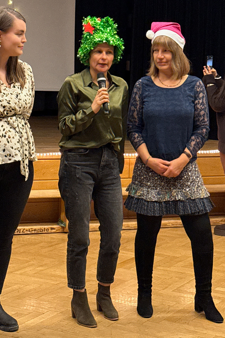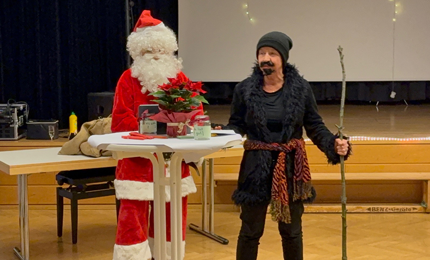 Geplant und durchgeführt wurde der Abend von den beiden aktuellen FOF-Jahrgängen 30 und 31. Sie dekorierten den Festsaal, sorgten für das leibliche Wohl und gestalteten das Programm mit kurzen Austauschrunden und einem World-Café zu aktuellen Themen von Leitungskräften in sozialpädagogischen Berufen. Unterstützt wurden die angehenden Fachwirtinnen und Fachwirte von Stefanie Meixner und Karin Ibele-Uehling, beide Lehrkräfte an der Fachschule. Sie ließen es sich auch nicht nehmen und regten mit einem kurzen Theaterstück als Nikolaus und Knecht Ruprecht zum Nachdenken und Diskutieren an. Dabei streiften sie neben aktuellen politischen Themen auch die Lebens- und Arbeitswelt der anwesenden Fach- und Führungskräfte.