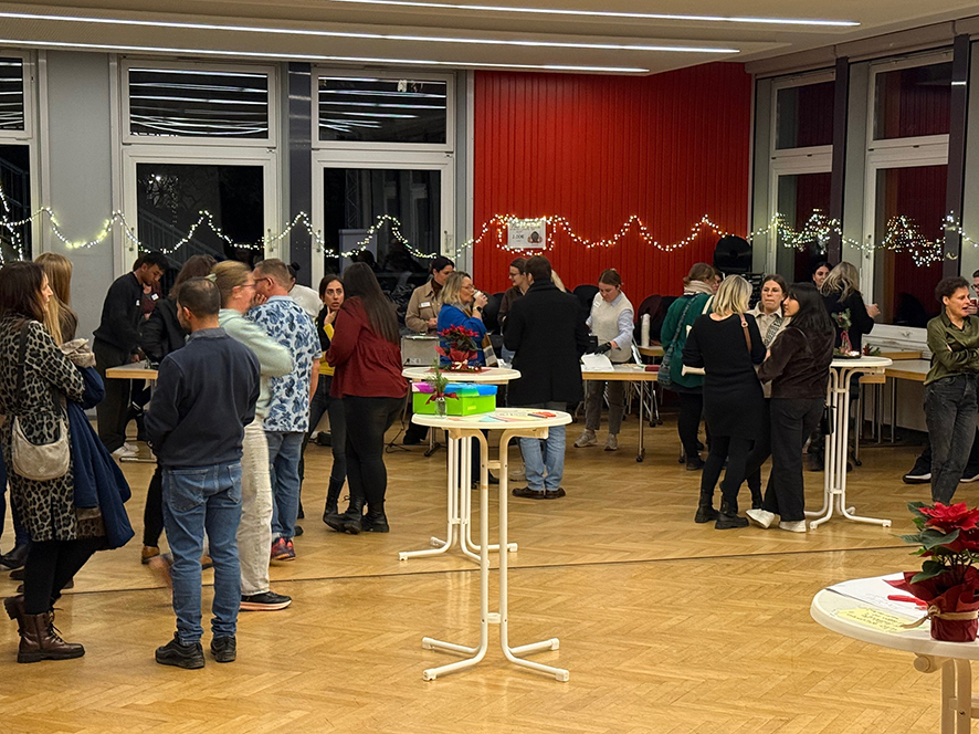 Unter dem Titel „Connect again“ trafen sich am 03.12.2025 ehemalige und aktuelle Schülerinnen und Schüler der Fachschule für Organisation und Führung (FOF) am Kompetenzzentrum Silberburg. Rund 80 Gäste tauschten sich aus und vernetzten sich bei Glühwein, Punsch, Waffeln und Hotdogs.